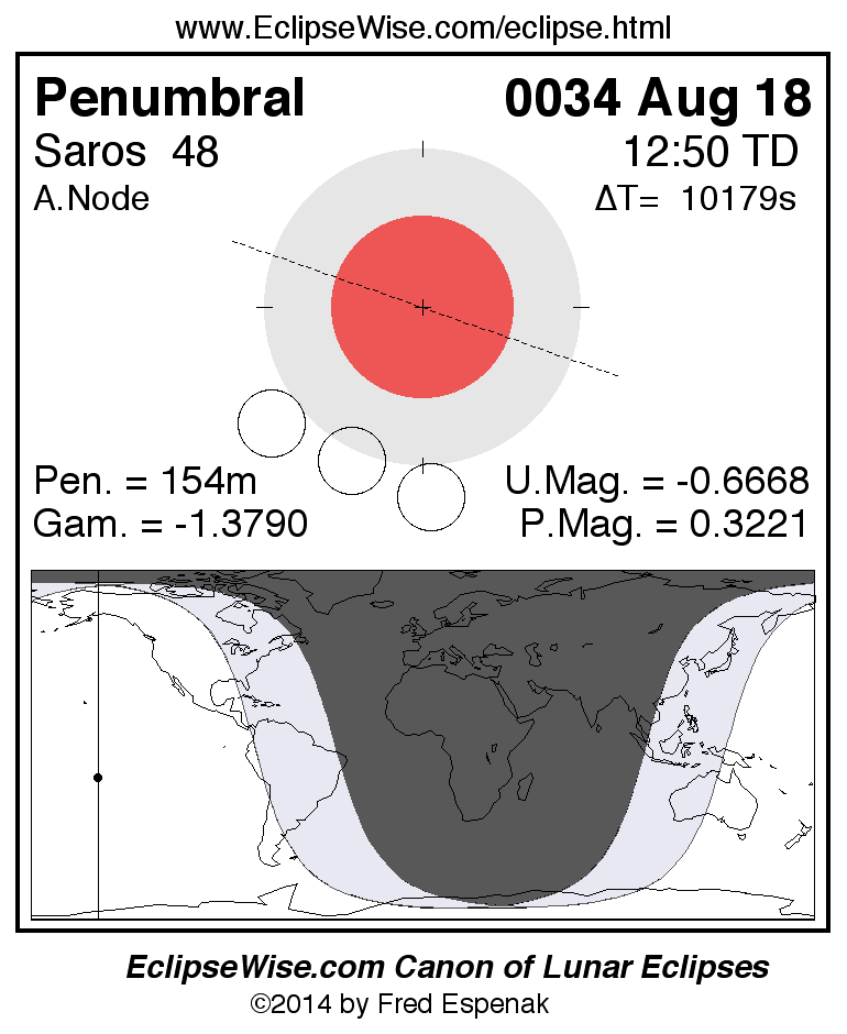 Penumbral Lunar Eclipse of 0034 Aug 18