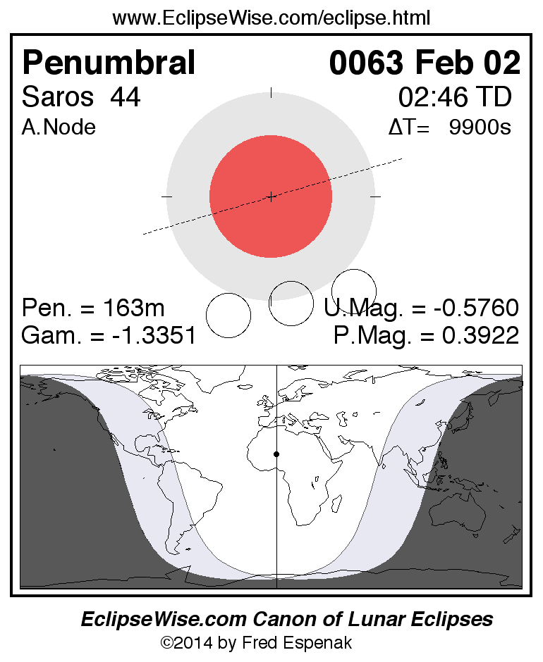 Penumbral Lunar Eclipse of 0063 Feb 02