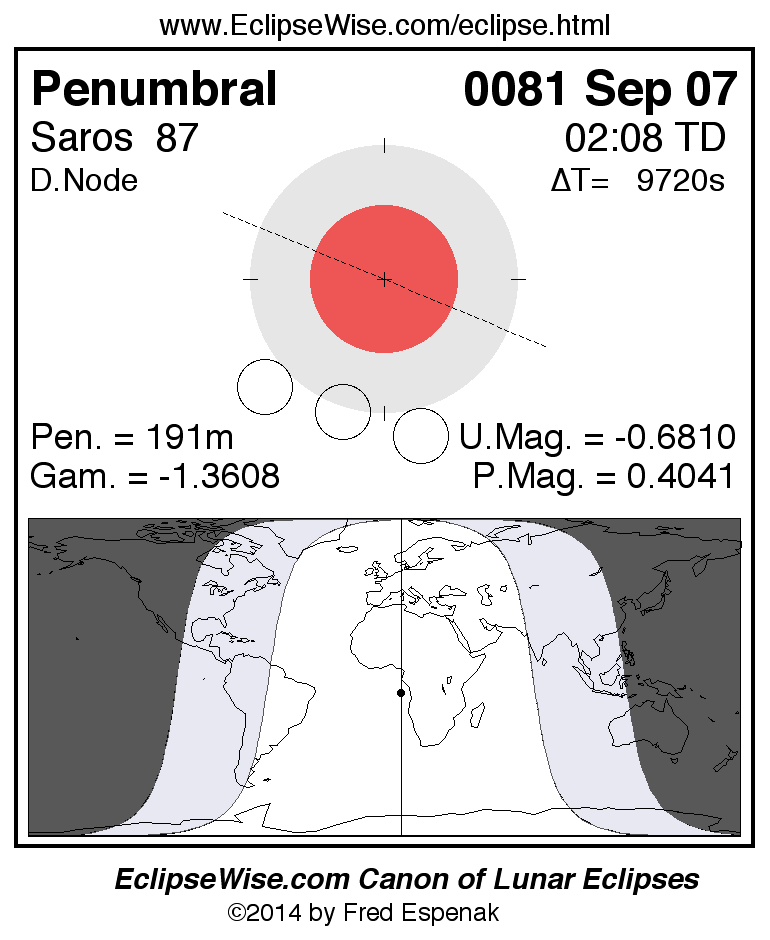 Penumbral Lunar Eclipse of 0081 Sep 07