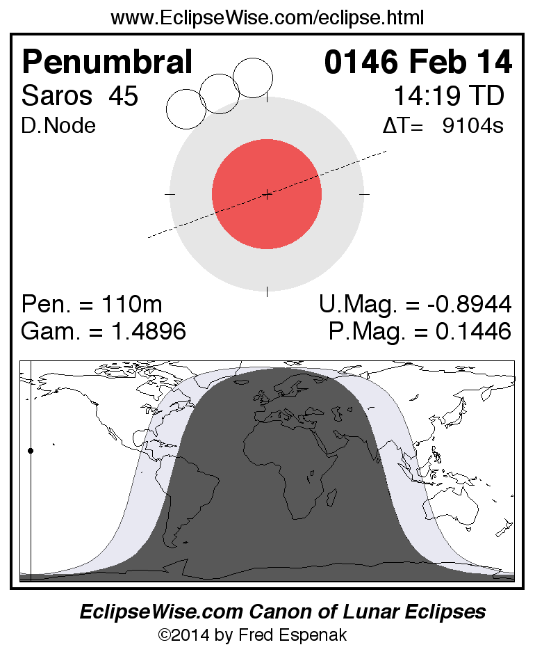 Penumbral Lunar Eclipse of 0146 Feb 14