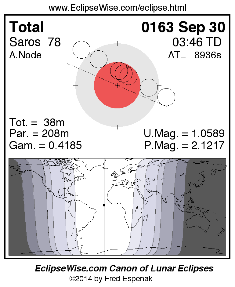 The total lunar eclipse of 0163 Sep 30 is preceded two weeks earlier by a hybrid solar eclipse on 0163 Sep 16.