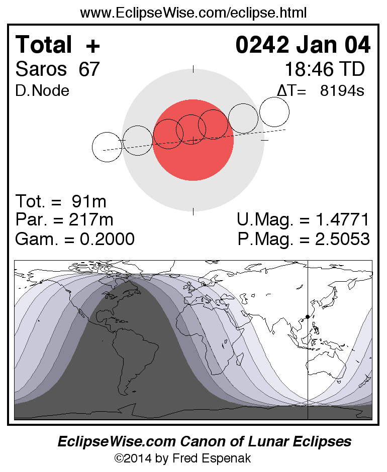 The total lunar eclipse of 0242 Jan 04 is followed two weeks later by a partial solar eclipse on 0242 Jan 18.