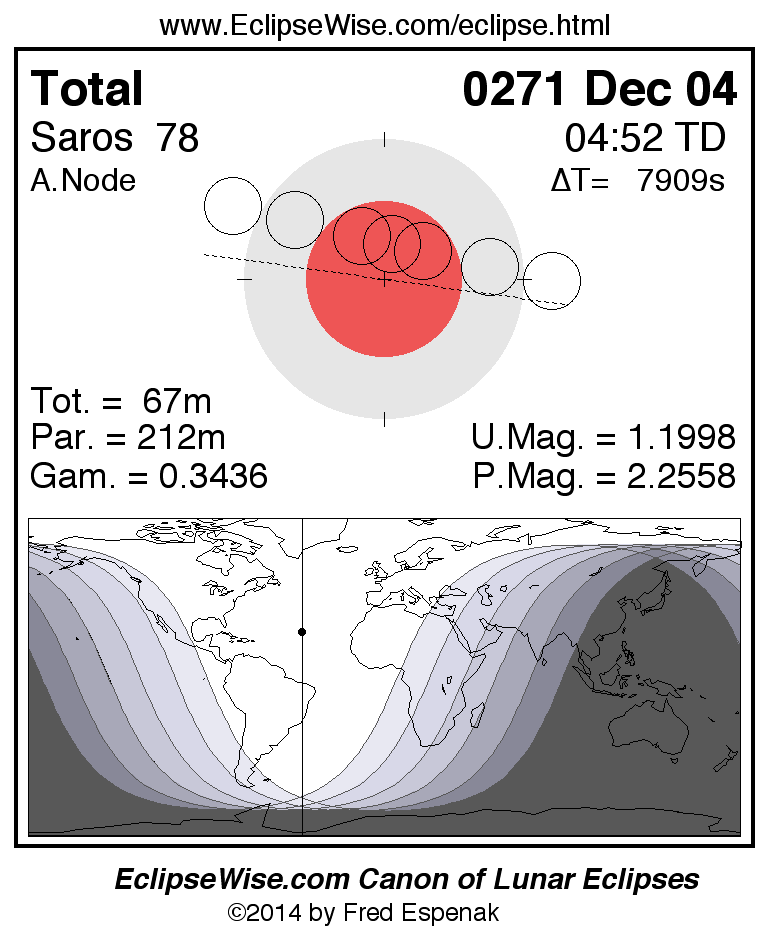 The total lunar eclipse of 0271 Dec 04 is preceded two weeks earlier by a partial solar eclipse on 0271 Nov 20.