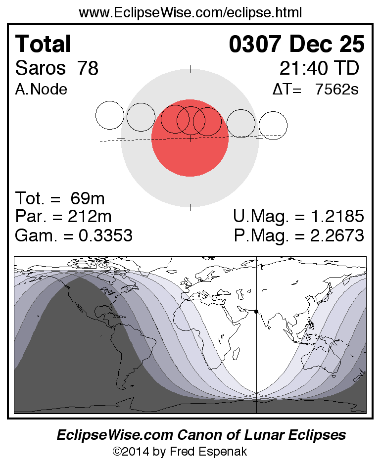 The total lunar eclipse of 0307 Dec 25 is preceded two weeks earlier by a partial solar eclipse on 0307 Dec 11.
