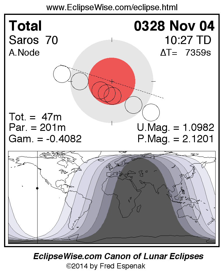 The total lunar eclipse of 0328 Nov 04 is followed two weeks later by a annular solar eclipse on 0328 Nov 18.