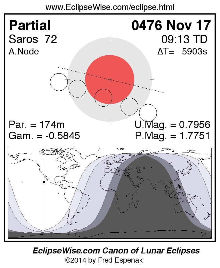The instant of greatest eclipse takes place on 0476 Nov 17 at 09:12:36 TD (07:34:14 UT1).