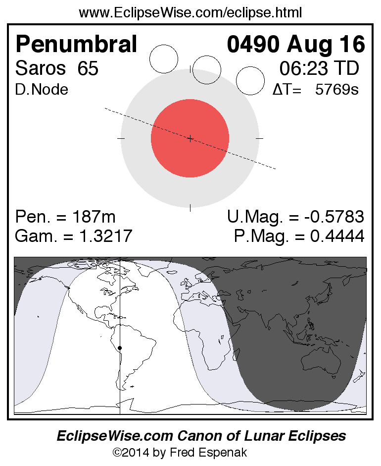 Penumbral Lunar Eclipse of 0490 Aug 16