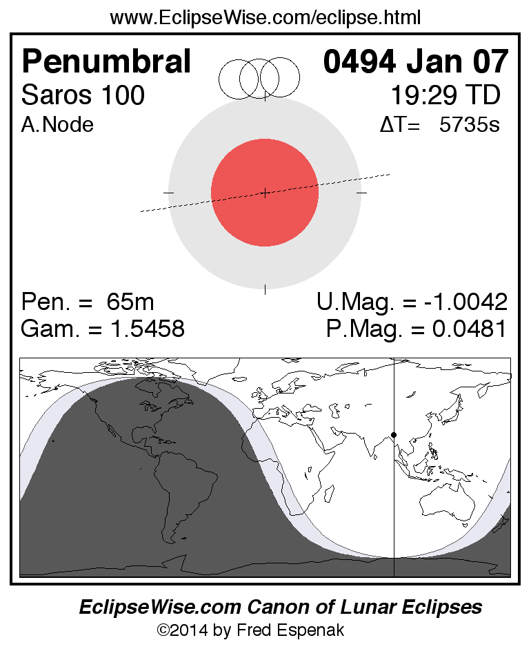 Penumbral Lunar Eclipse of 0494 Jan 07
