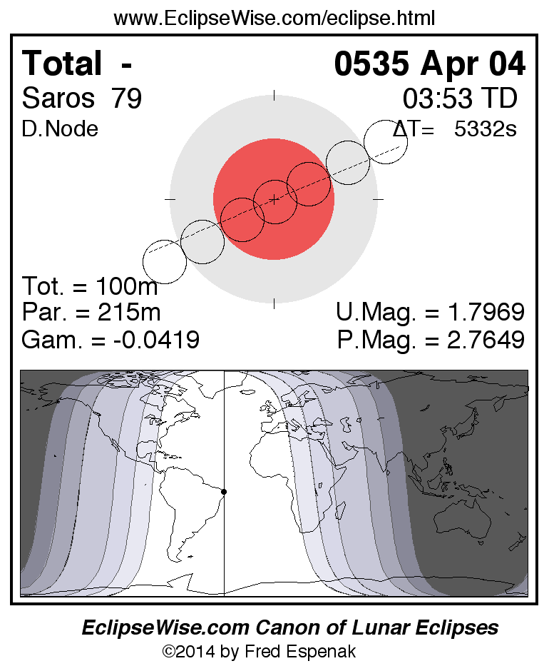 The total lunar eclipse of 0535 Apr 04 is preceded two weeks earlier by a partial solar eclipse on 0535 Mar 19,