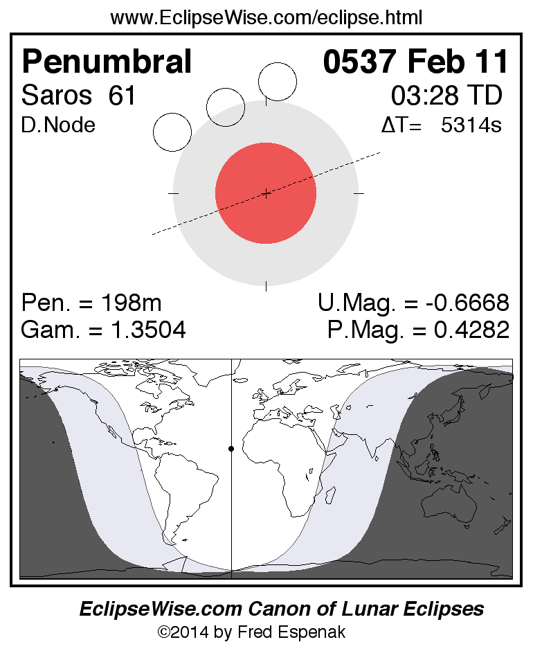 Penumbral Lunar Eclipse of 0537 Feb 11