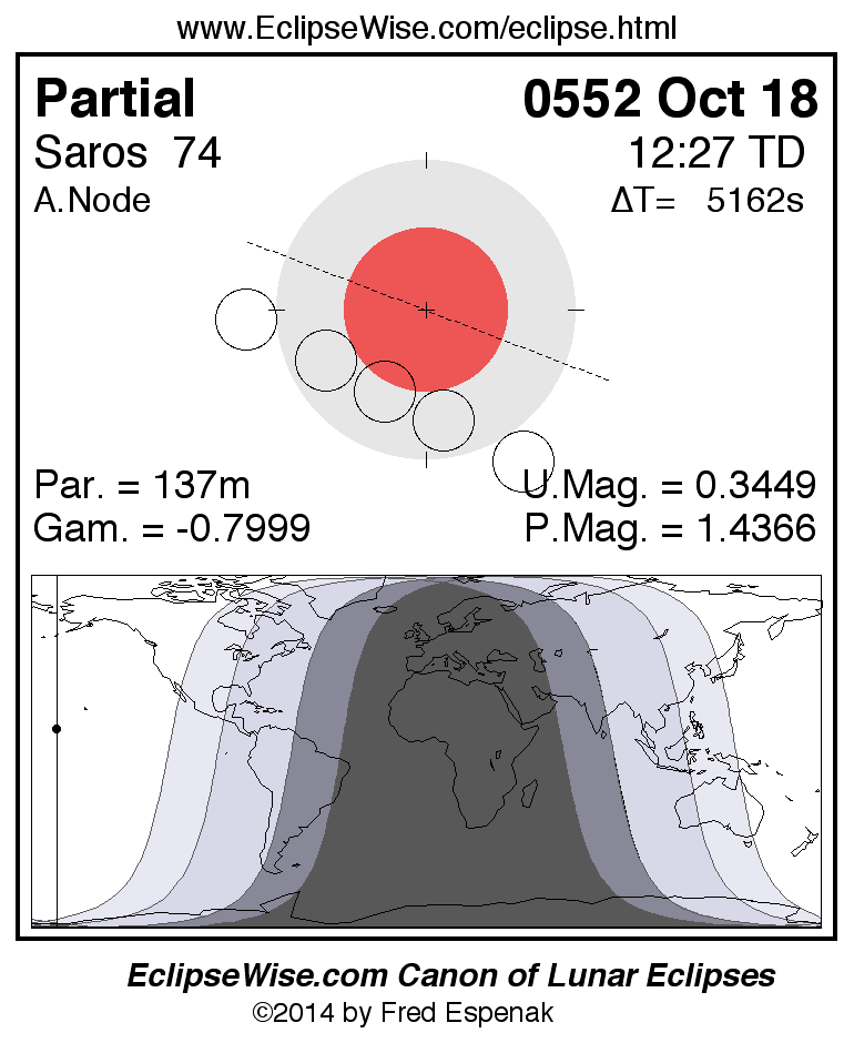 The partial lunar eclipse of 0552 Oct 18 is followed two weeks later by a total solar eclipse on 0552 Nov 02.