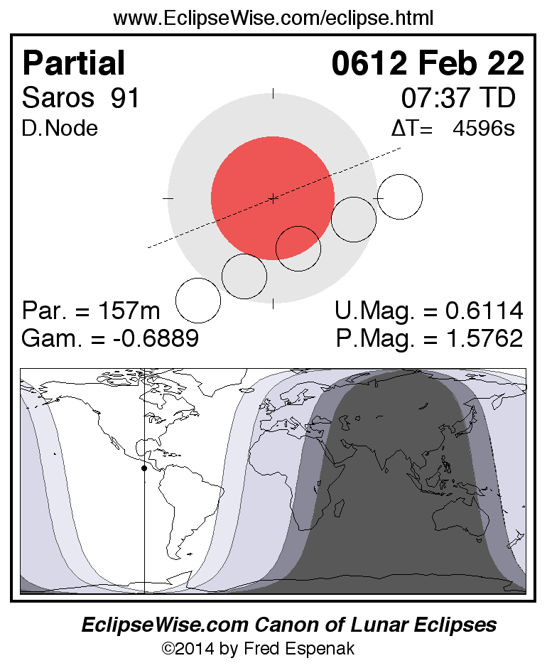 The partial lunar eclipse of 0612 Feb 22 is preceded two weeks earlier by a annular solar eclipse on 0612 Feb 07.