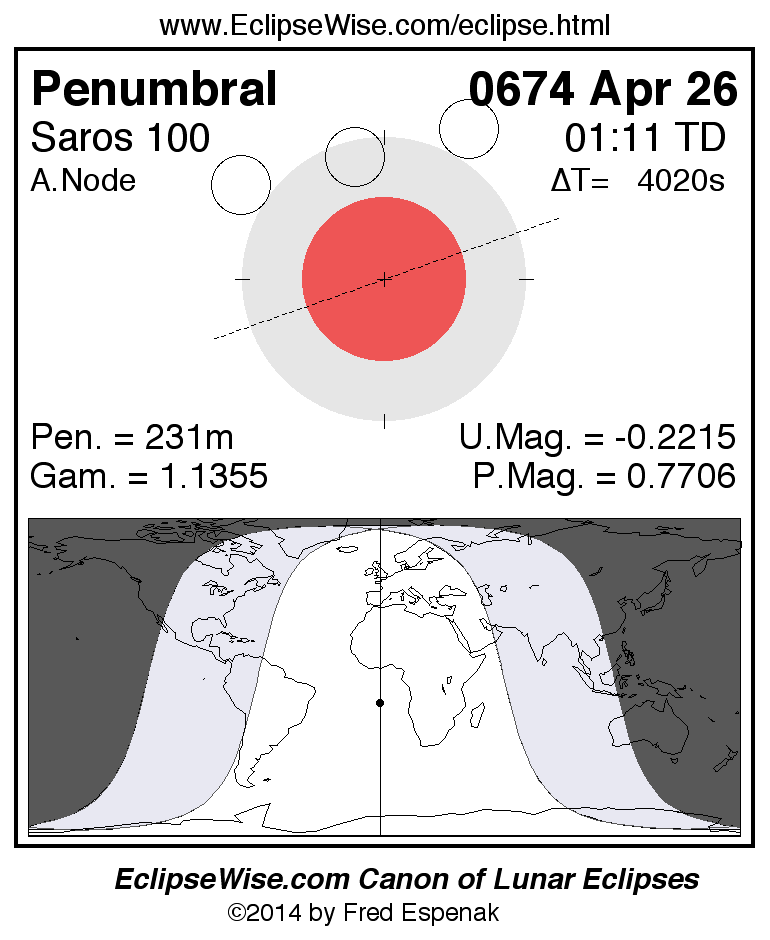 Penumbral Lunar Eclipse of 0674 Apr 26