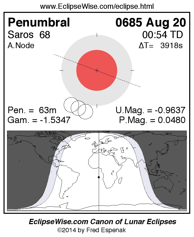 Penumbral Lunar Eclipse of 0685 Aug 20