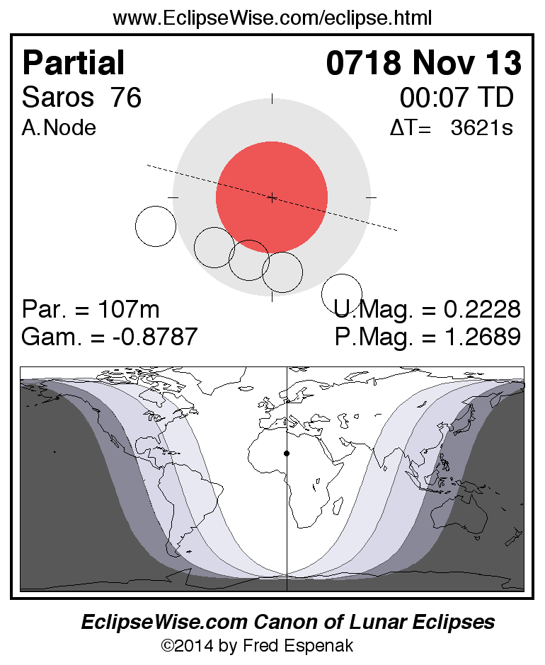 The partial lunar eclipse of 0718 Nov 13 is followed two weeks later by a annular solar eclipse on 0718 Nov 26.