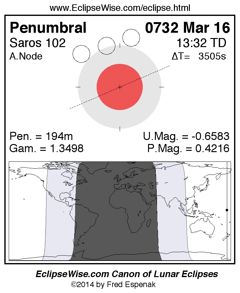 Penumbral Lunar Eclipse of 0732 Mar 16
