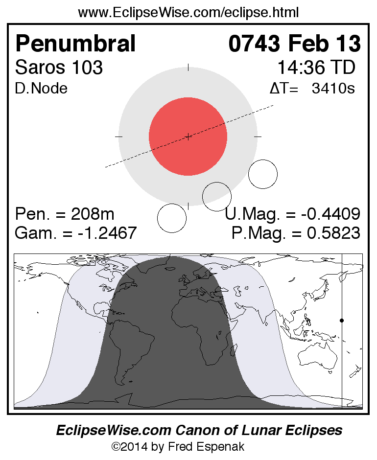 Penumbral Lunar Eclipse of 0743 Feb 13