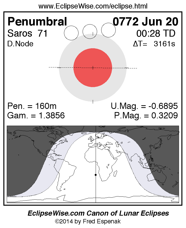Penumbral Lunar Eclipse of 0772 Jun 20