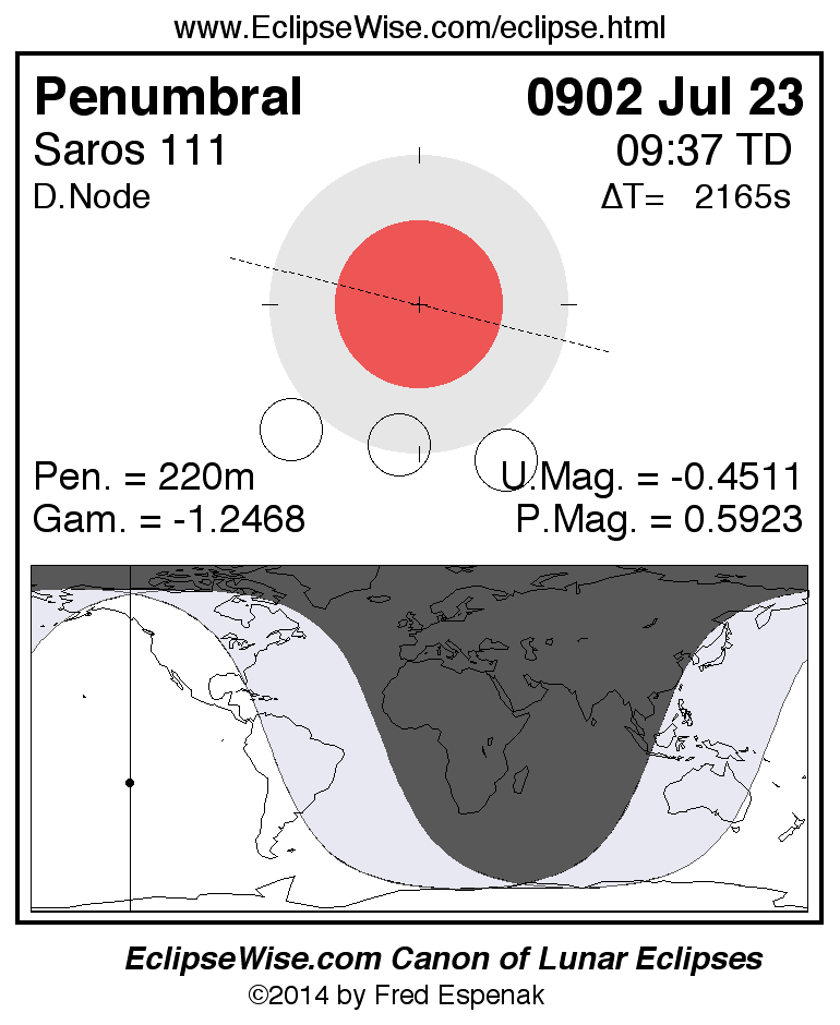 Another lunar eclipse occurs one synodic month before the 0902 Jul 23 eclipse. It is the penumbral lunar eclipse of 0902 Jun 23.