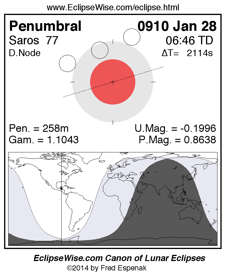 Penumbral Lunar Eclipse of 0910 Jan 28