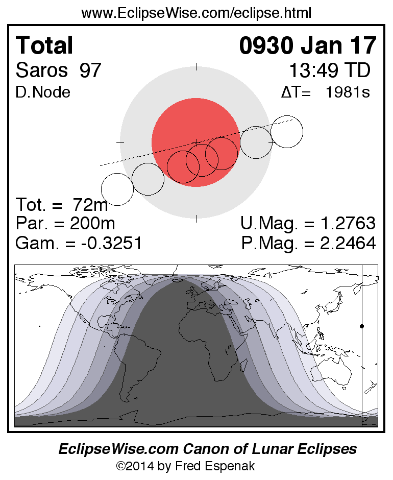 The total lunar eclipse of 0930 Jan 17 is preceded two weeks earlier by a partial solar eclipse on 0930 Jan 02.