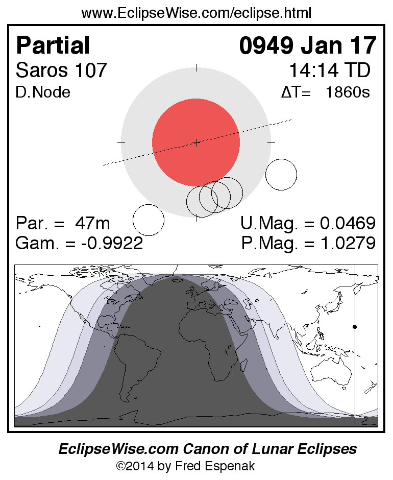 The partial lunar eclipse of 0949 Jan 17 is preceded two weeks earlier by a annular solar eclipse on 0949 Jan 02.