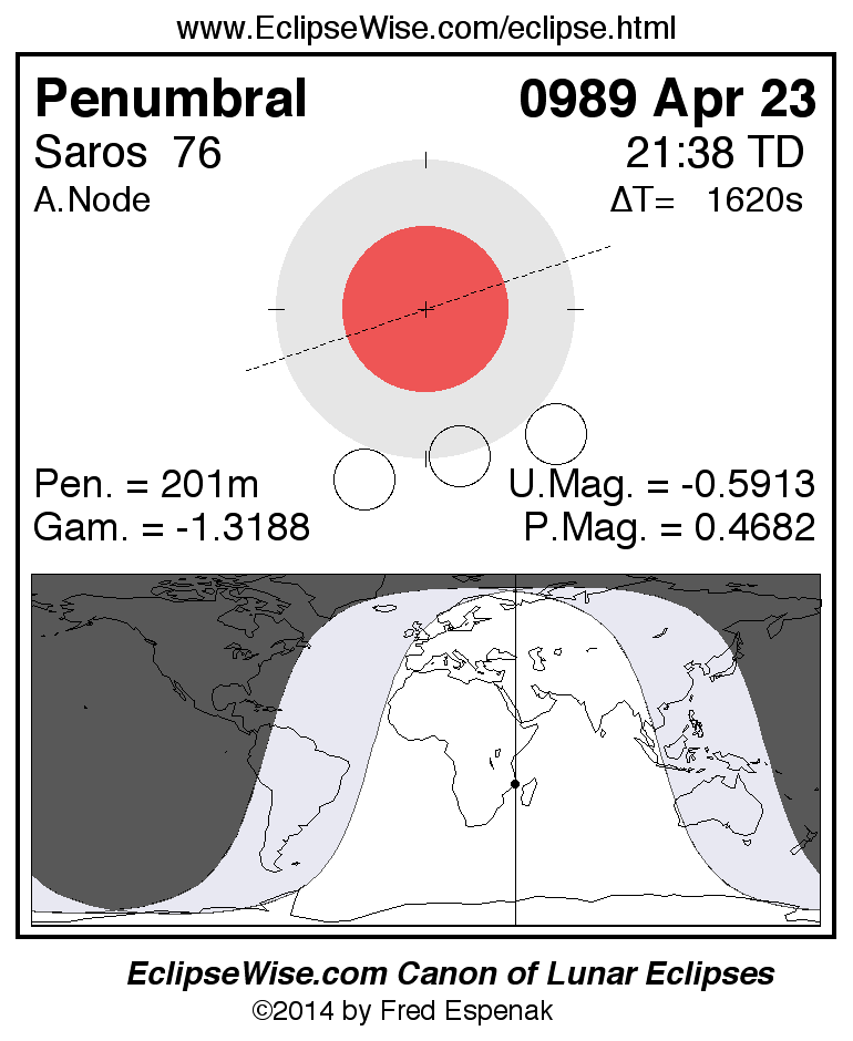 Penumbral Lunar Eclipse of 0989 Apr 23