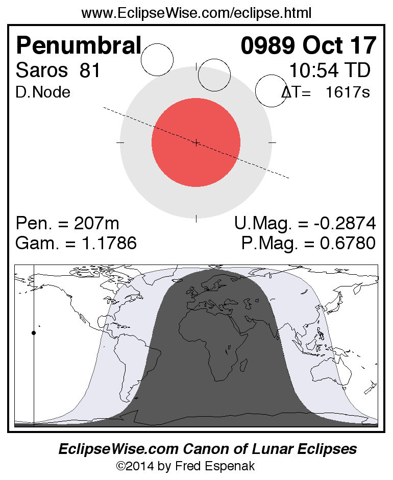 Penumbral Lunar Eclipse of 0989 Oct 17