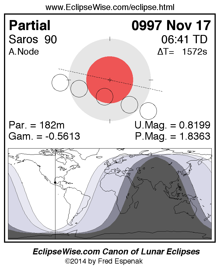 The instant of greatest eclipse takes place on 0997 Nov 17 at 06:40:60 TD (06:14:48 UT1).