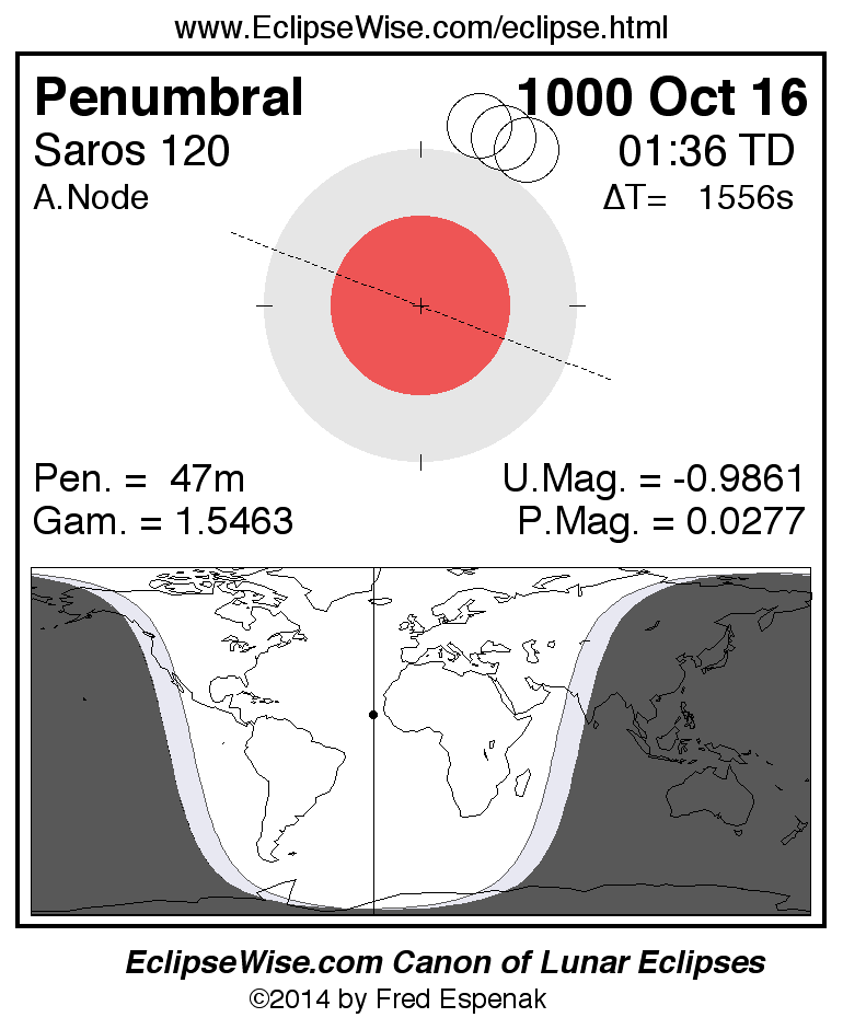 Penumbral Lunar Eclipse of 1000 Oct 16