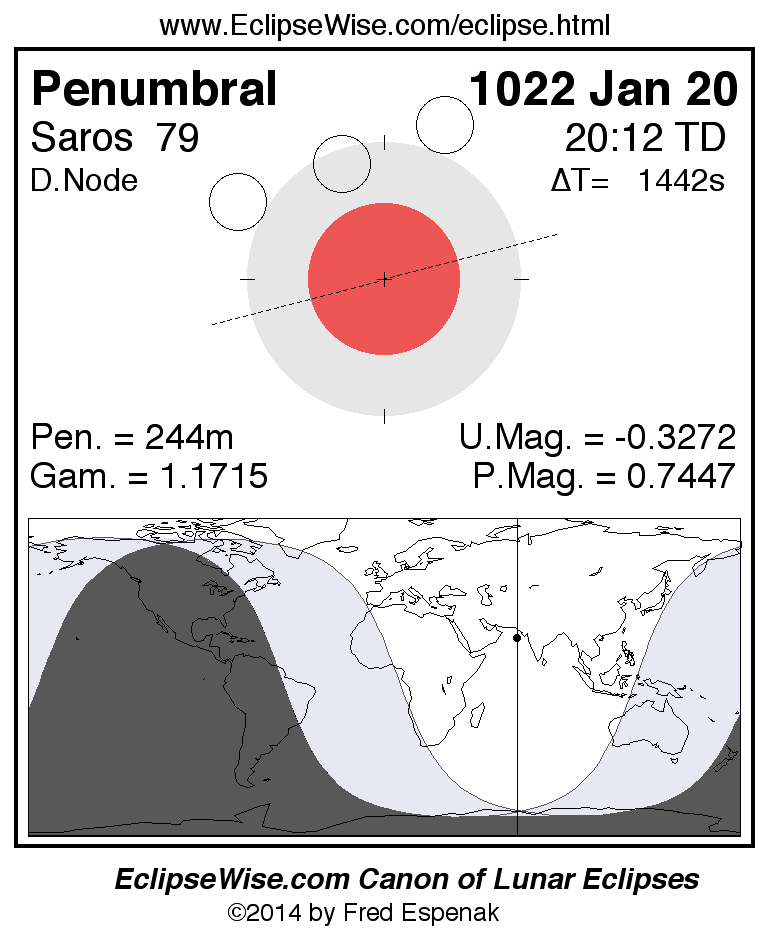 Penumbral Lunar Eclipse of 1022 Jan 20