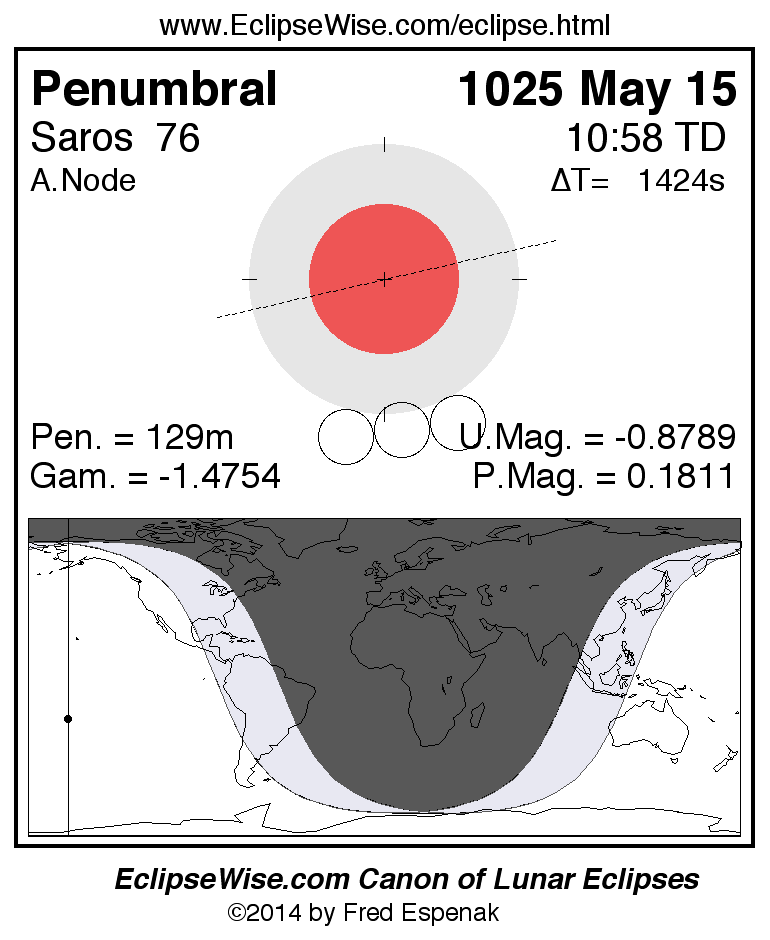 Penumbral Lunar Eclipse of 1025 May 15