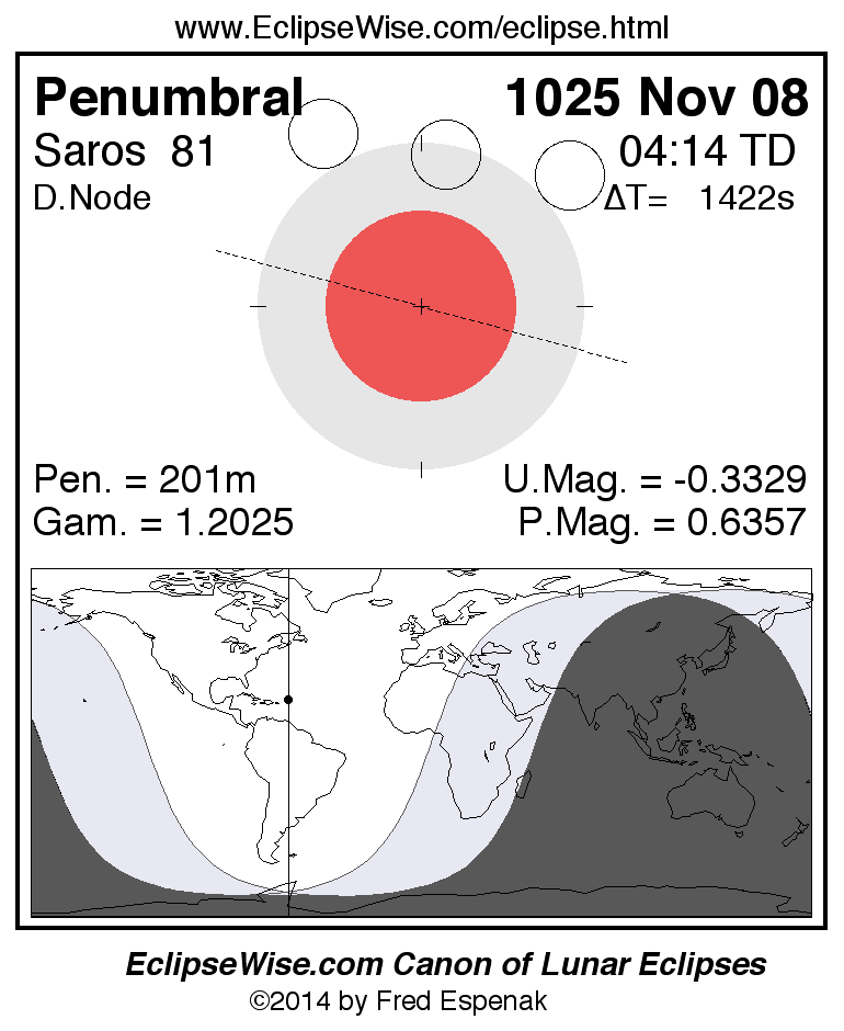 Penumbral Lunar Eclipse of 1025 Nov 08