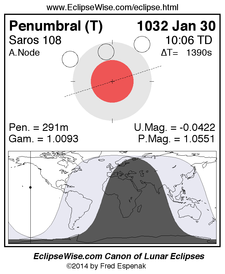 Penumbral Lunar Eclipse of 1032 Jan 30