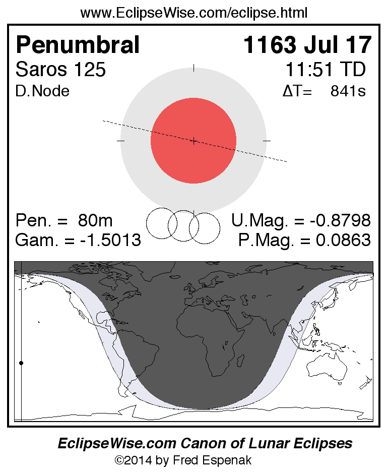 Penumbral Lunar Eclipse of 1163 Jul 17