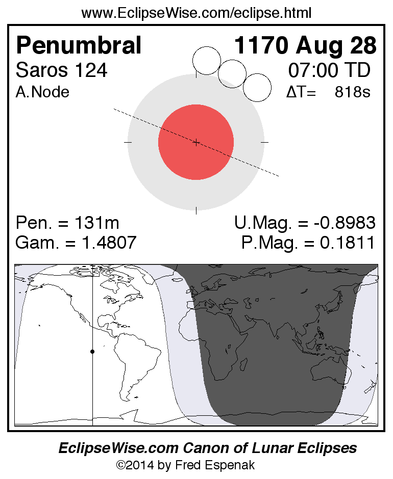 Penumbral Lunar Eclipse of 1170 Aug 28
