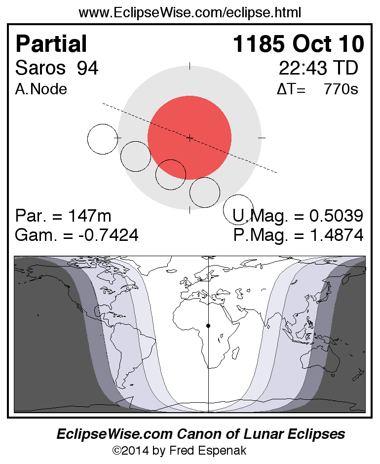 Partial Lunar Eclipse of 1185 Oct 10