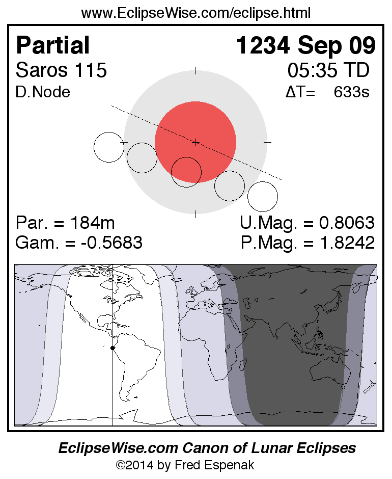 The instant of greatest eclipse takes place on 1234 Sep 09 at 05:35:17 TD (05:24:44 UT1).