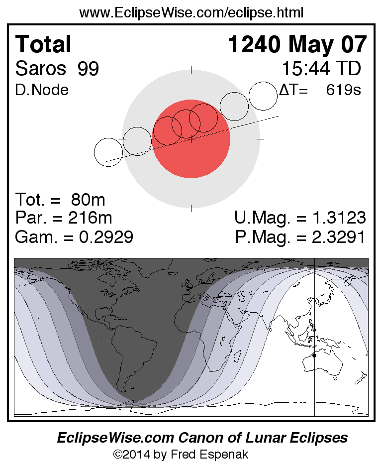 Total Lunar Eclipse of 1240 May 07