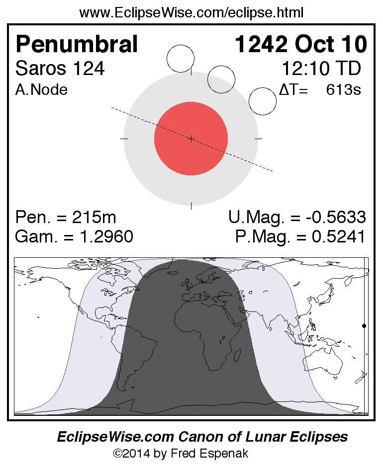 Penumbral Lunar Eclipse of 1242 Oct 10