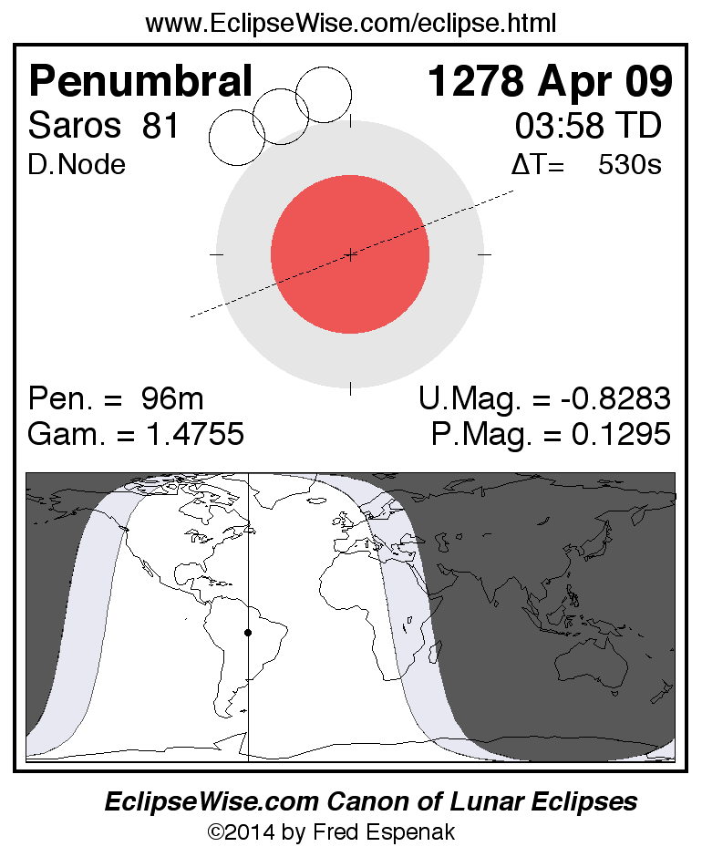 Penumbral Lunar Eclipse of 1278 Apr 09