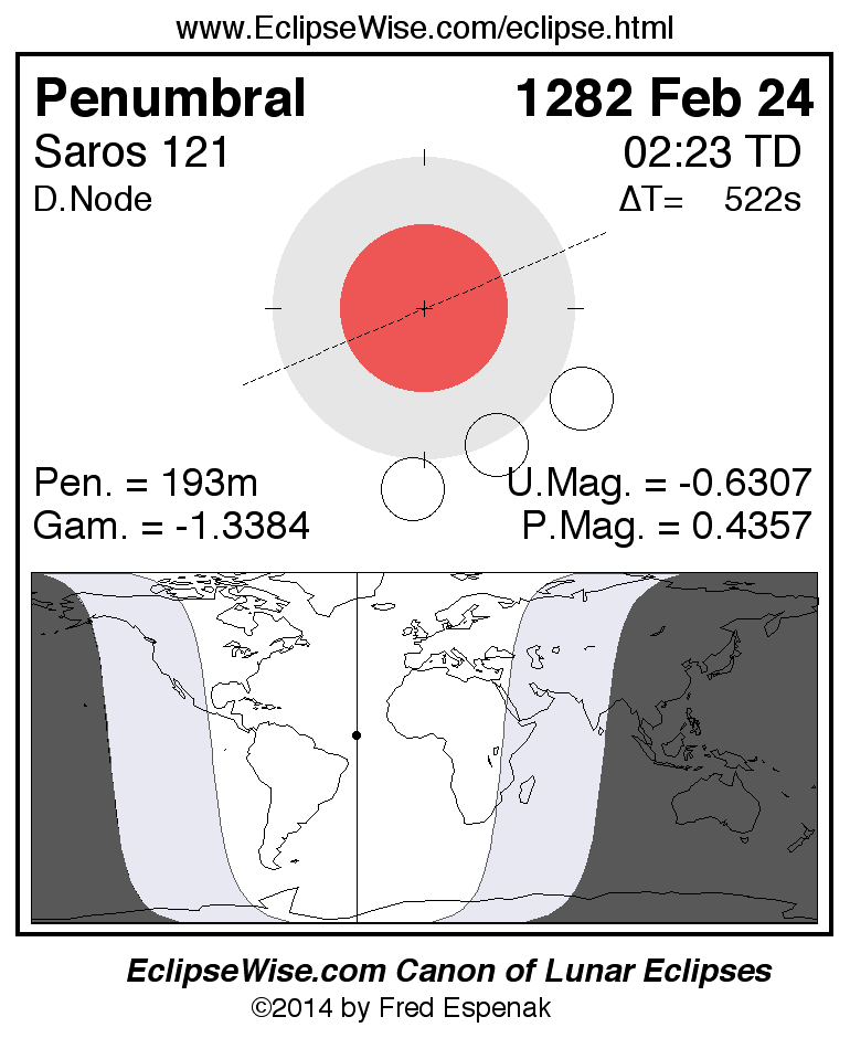 Penumbral Lunar Eclipse of 1282 Feb 24