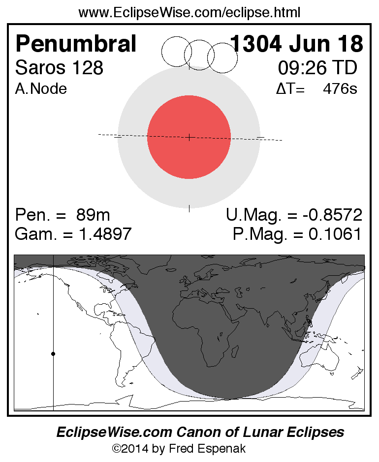 Penumbral Lunar Eclipse of 1304 Jun 18