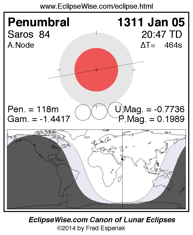 Penumbral Lunar Eclipse of 1311 Jan 05