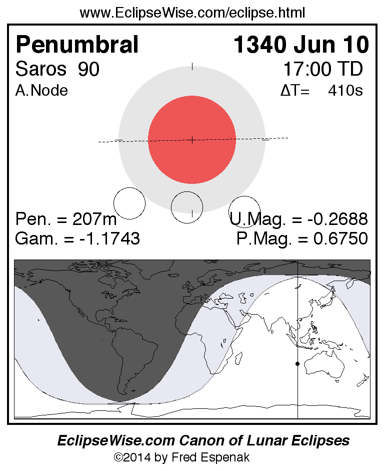 Penumbral Lunar Eclipse of 1340 Jun 10
