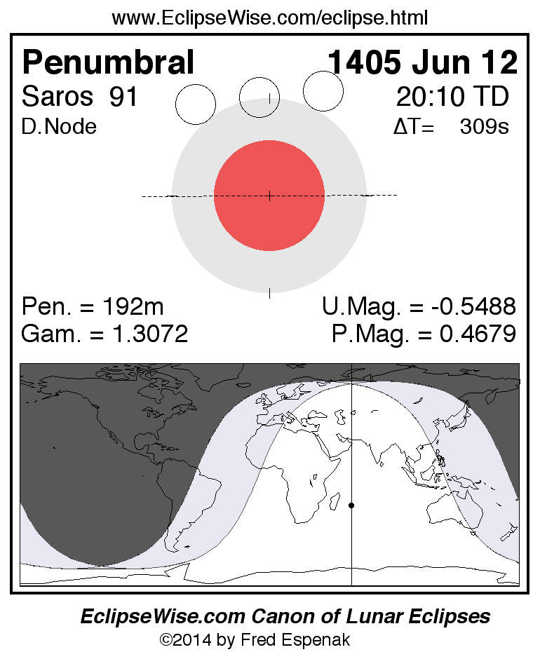 Penumbral Lunar Eclipse of 1405 Jun 12