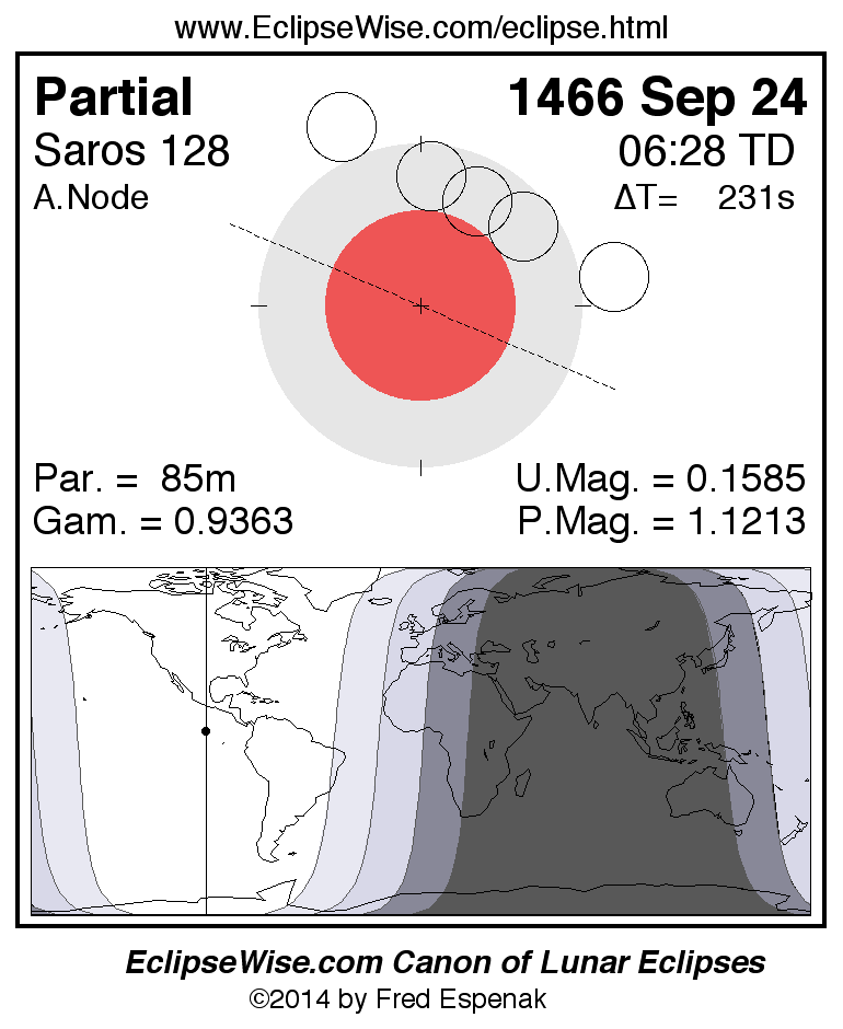 The instant of greatest eclipse takes place on 1466 Sep 24 at 06:28:01 TD (06:24:09 UT1).