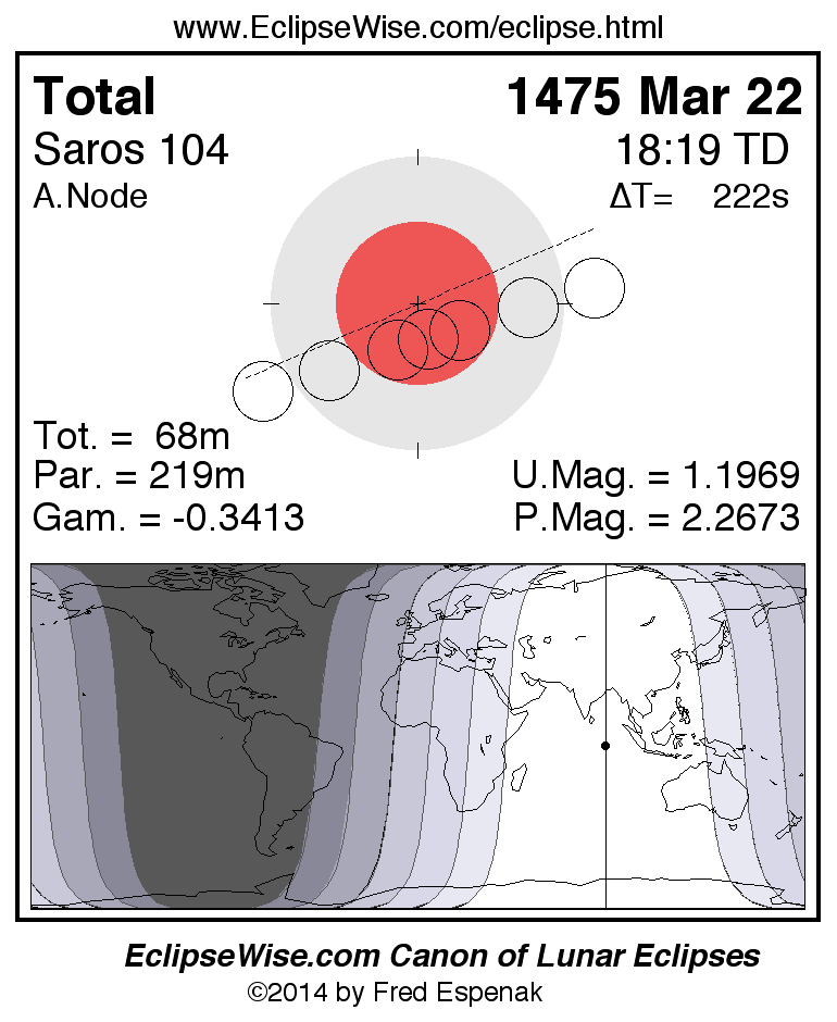 The instant of greatest eclipse takes place on 1475 Mar 22 at 18:18:37 TD (18:14:55 UT1).