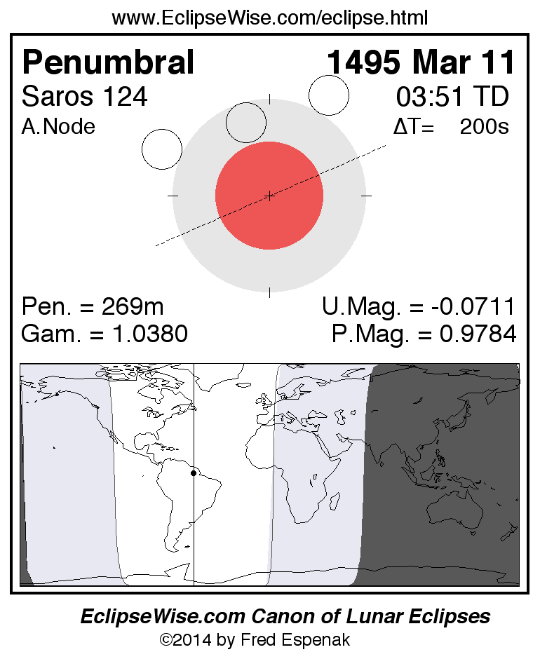 Penumbral Lunar Eclipse of 1495 Mar 11