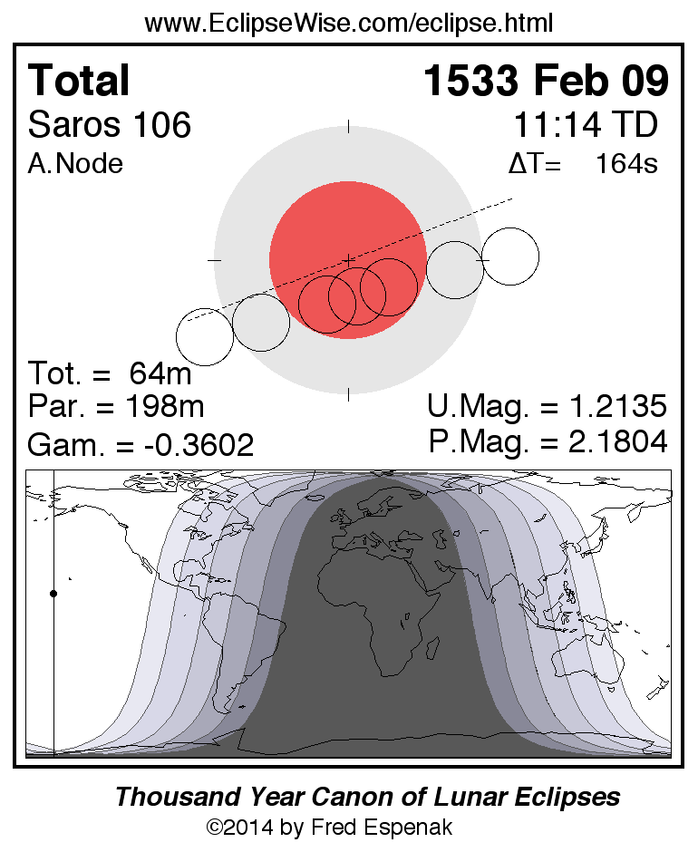 Total Lunar Eclipse of 1533 Feb 09